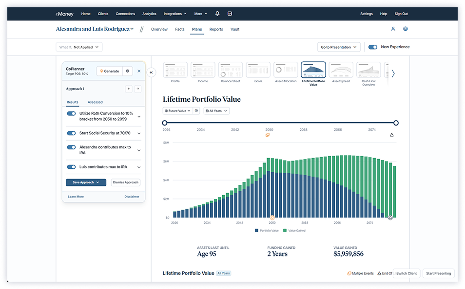 Harness the built-in intelligence of CoPlanner to create plans faster, leverage an industry-leading Client Portal for seamless collaboration, and tap into powerful data aggregation and analytics to stay connected and drive growth.