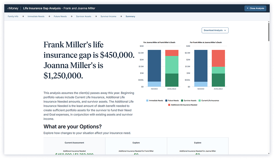 For clients with specific priorities like retirement, education, or life insurance, Needs Analysis enables you to deliver quick, targeted planning for individual goals. It’s scalable, intuitive, and helps open the door to deeper, more comprehensive planning conversations.